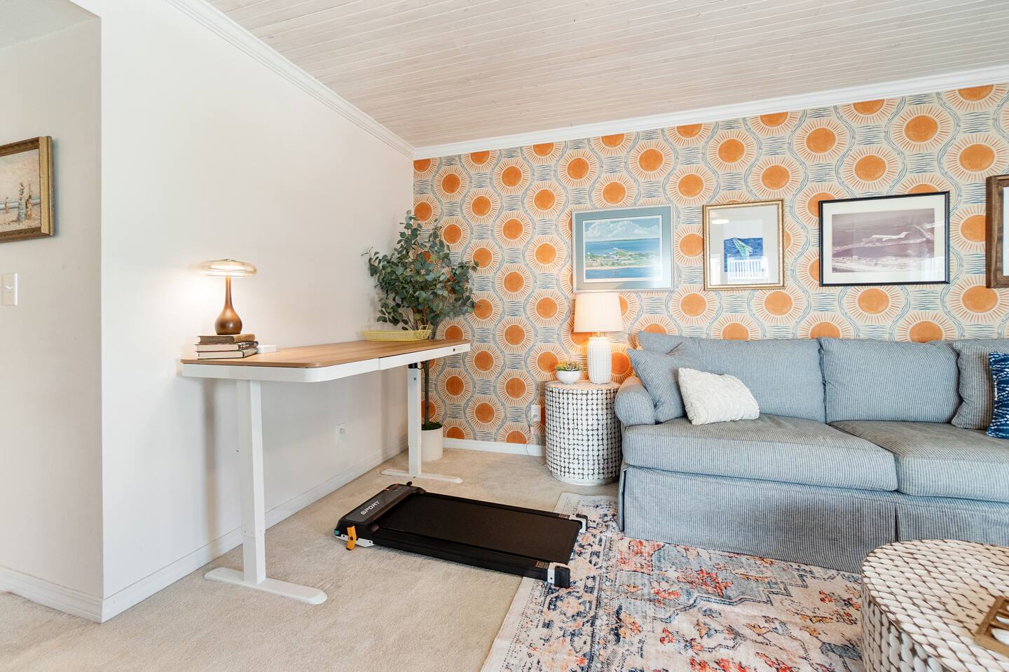 The Space 🛏️ Couples-Perfect Suites: -Primary Suite: Luxury king bed, balcony access, a cozy reading nook, and a Smart TV -Second Suite: Queen bed, balcony access, Smart TV, and a desk, just in case you need to send out a few final emails before slamming that laptop shut for the weekend. 🌹 Romantic Touches Throughout: -3 private decks—each made for sunset cocktails, laughing, and morning coffee dates -Rooftop Sectional/Sun Loungers-Outdoor movie projector for cozy nights under the stars -Retro bar cart stocked with mixology tools to inspire your inner bartender 🍽️ Cook Together, Dine Together: -Chef’s kitchen with a massive island, perfect for cooking side by side -Charming dining table for intimate dinners or late-night desserts -Charcoal grill & picnic table for a casual BBQ ⛱️ Private Beach & Waterfront Bliss: -Steps to your own secluded sound-side beach (skip the crowds!). Don't worry about bringing anything, we have all the gear you'll need for a beach day! -Paddleboards for a playful adventure together -Or take a dip in the pool and listen to the waves Highlights: -Rooftop sunset loungers -Beach Gear -Outdoor movie theatre for starlit date nights -Two paddleboards for you to use at no extra charge -Luxe linens, plush pillows, & cozy throws ✨ Book now and enjoy your mid-century modern escape by the sea.
