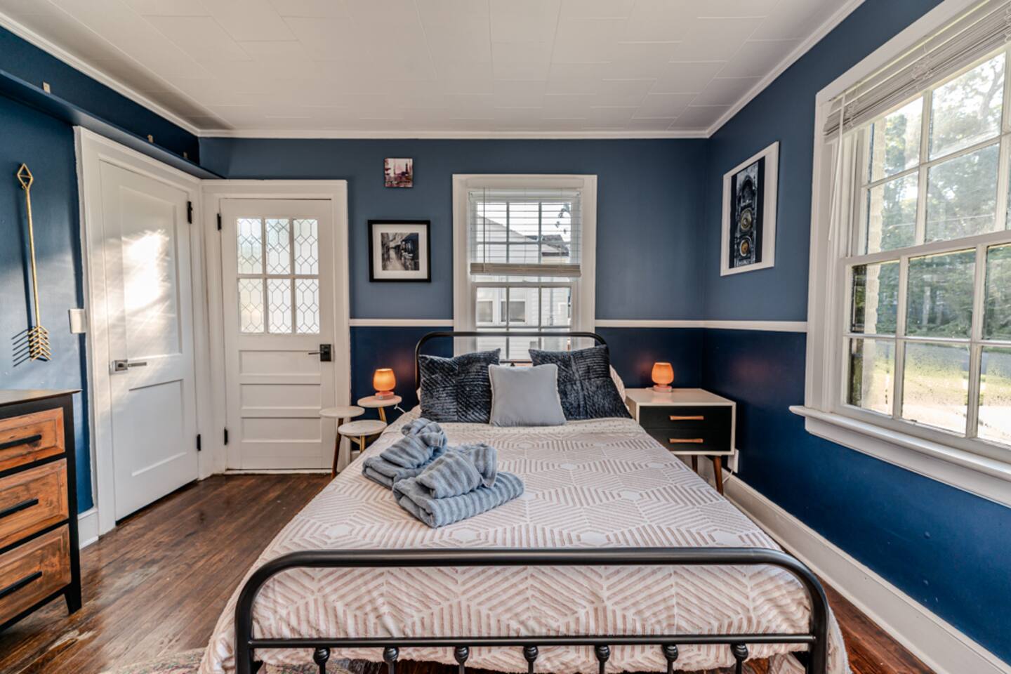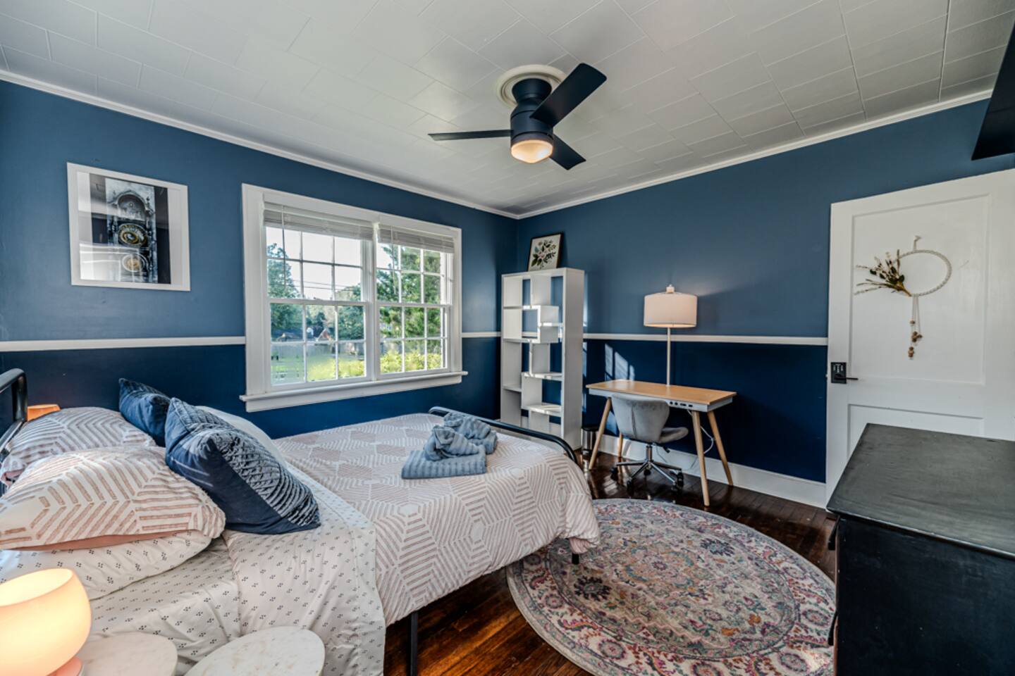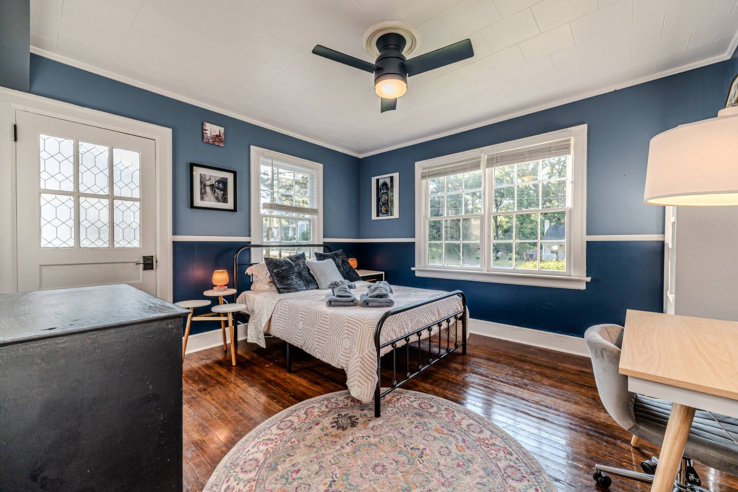 This beautiful, large historic home is recently renovated and fully furnished! Bedroom 1 - Green Room: King sized bed Bedroom 2 - Blue Room: Double sized bed The kitchen has been remodeled and features new appliances, including a dishwasher. The stove also has air frying feature! Inside the doorway is a sprawling living room with large comfy couches and a custom piano dry bar. Off the main living room is a cozy sunroom to enjoy the Carolina weather. The dining room features a large wooden table with enough space to seat everyone! Upstairs is a cozy movie room ready for the best movie nights. It is a massive 80-inch smart TV with a modern surround sound with an old-timey twist. There is a full-sized washer/dryer in the basement. All bedrooms feature ceiling fans and keyless entry locks for privacy. Easy driveway parking. What about the area? Like golf? The home is less than 20 minutes away from Tobacco Road Golf Club. Voted 12th best in the STATE by Golf Digest. Explore all Sanford has to offer.