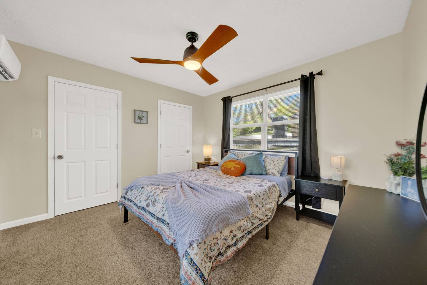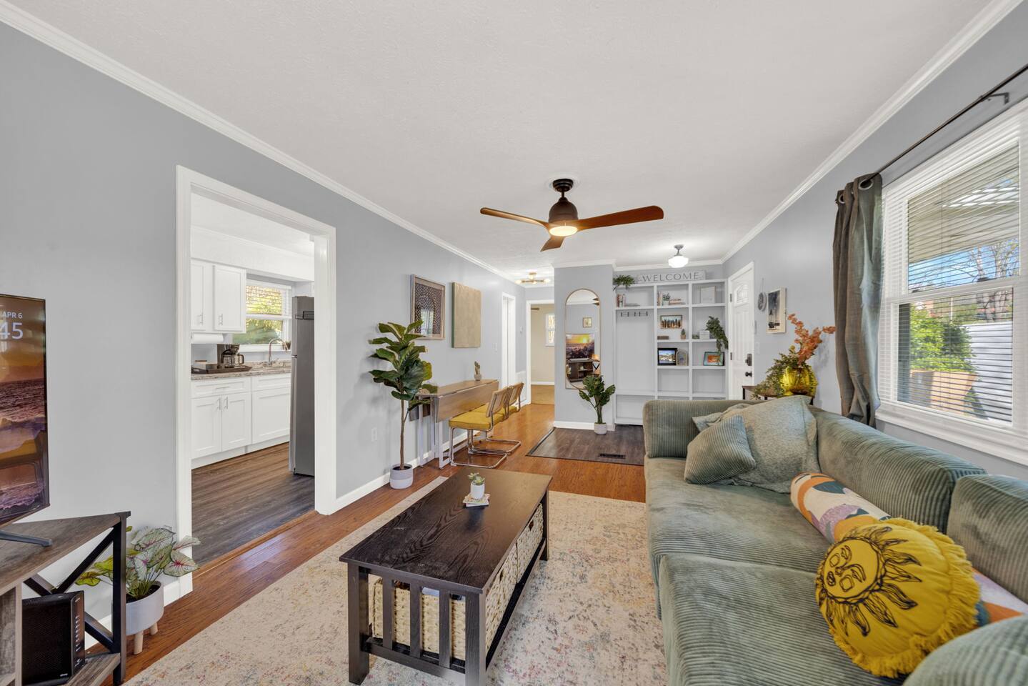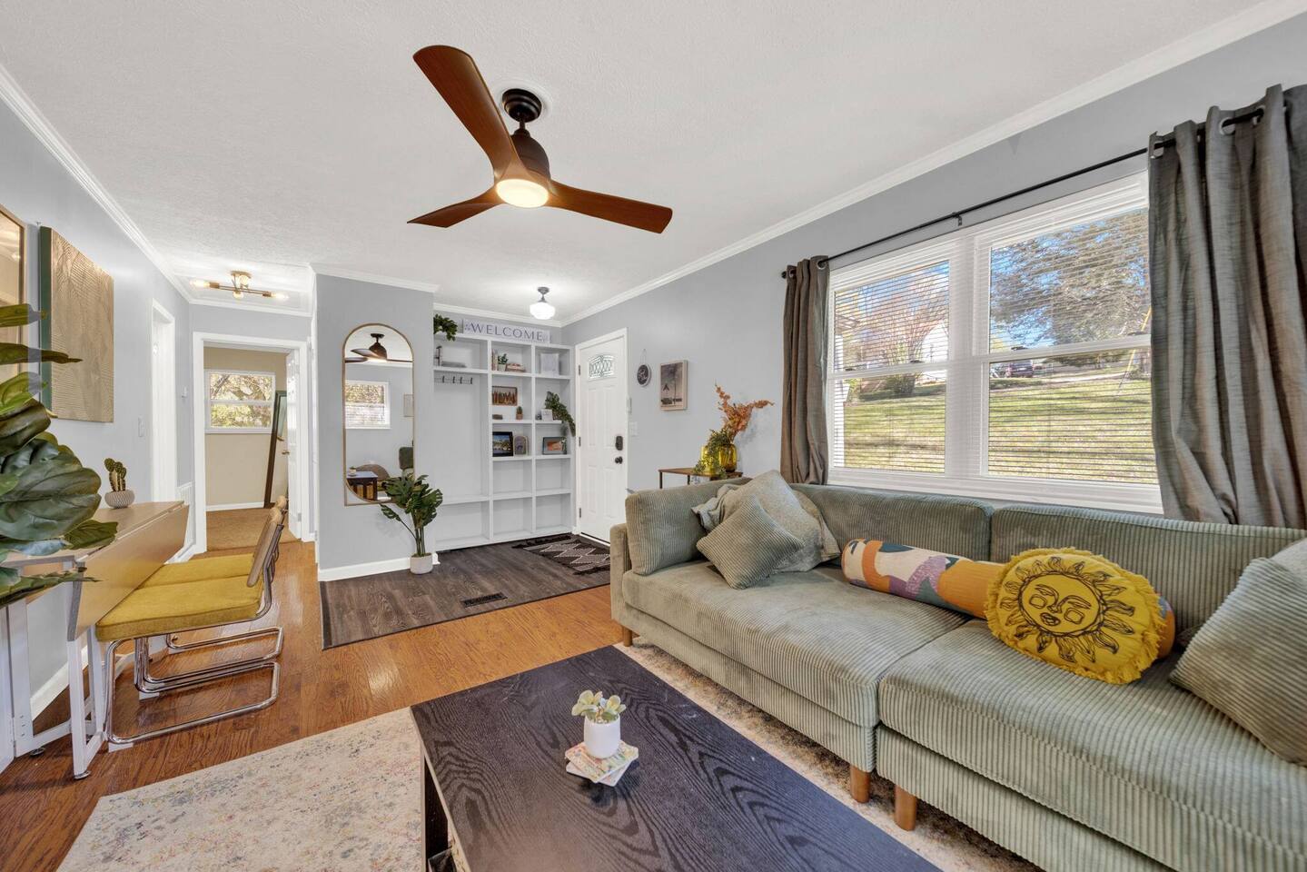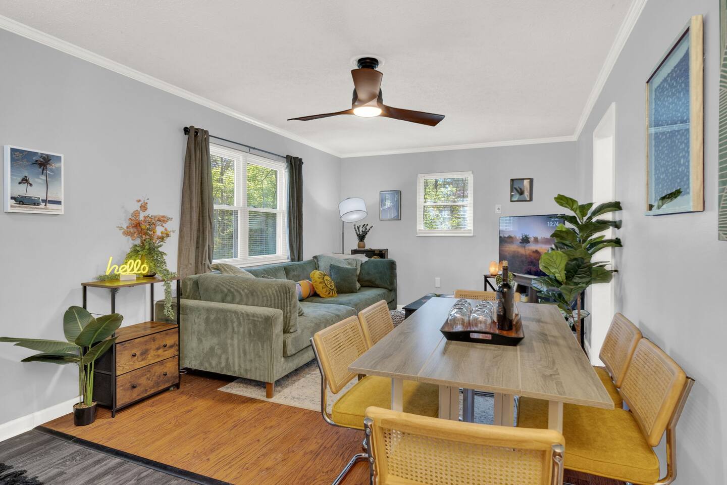 -Doggie Welcome Basket: stocked with a dog bed and blanket and towels, water bowl with a silicone tray, treats, and poop bags! -Sleeps 6: 3 Bedrooms (2 Queens, 2 Twins that convert to King) -1 Full Bathroom: Combo tub/shower, stocked with essentials -Fully Equipped Kitchen: Cookware, dinnerware, spices & more -Smart Layout: Open-concept living + flexible dining table -Work-Ready: Electric standing desk + office chair -Large closets & blackout curtains for deep sleep -Pet-Friendly: Fully fenced backyard, no pet fee! -Charcoal grill & outdoor picnic table -10 min drive to Market Square -10 min drive to Neyland Stadium -1 hour drive to the Smoky Mountains FREE AMENITIES -High-Speed Wi-Fi -Free Parking: Driveway fits multiple cars -55" Smart TV with Roku -Coffee setup with Keurig + K-cups -Shampoo, conditioner, body wash, and fresh towels -Kitchen staples: Paper towels, oil, salt, pepper, cooking spray -Laundry: Washer & dryer, detergent provided -Board games -Twin beds convert to king—just let us know what you prefer! ⭐ 5-Star Guest Favorites: “Really cute, cozy spot, tucked away with the trees. The hosts are friendly and responsive. I appreciated the accessibility to the washer/dryer. would come back <3” -Lareisa “Great place to stay, everything is within 5-15 mins drive. Lovely little place to stay, would definitely say it was worth the money!” -Tim “Great location! The property was exactly as described—clean, comfortable, and well-maintained. It was close to Neyland Stadium and downtown Knoxville, making it super convenient for our trip. The host was fantastic—very responsive and helpful throughout our stay. Highly recommend!” -Dan Bedrooms All three bedrooms are thoughtfully furnished to make your stay comfortable—whether you’re a family, a travel nurse, or a remote worker. 2 Queen bedrooms with plush mattresses, blackout curtains, and spacious closets. 3rd Bedroom: Two twin beds that can convert into a king for extra flexibility. Bathroom A sparkling clean full bathroom with combo tub/shower—stocked with all the essentials so you don’t have to overpack. Fresh towels, shampoo, conditioner, body wash, and toilet paper are all provided. Kitchen & Living Room The kitchen comes ready to cook—perfect for meals at home or post-hike breakfasts. Seating for 6 with a fold-out dining table. Deep-seater sectional & floor cushions—plenty of room to gather. Roku-enabled smart TV for movie nights. Outdoor Space Let the dogs roam free or fire up the grill in the fully fenced backyard! ✨ Book Now & Let Us Guide You Through Knoxville! ✨