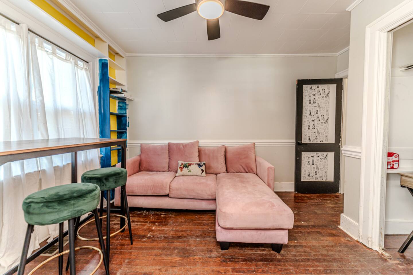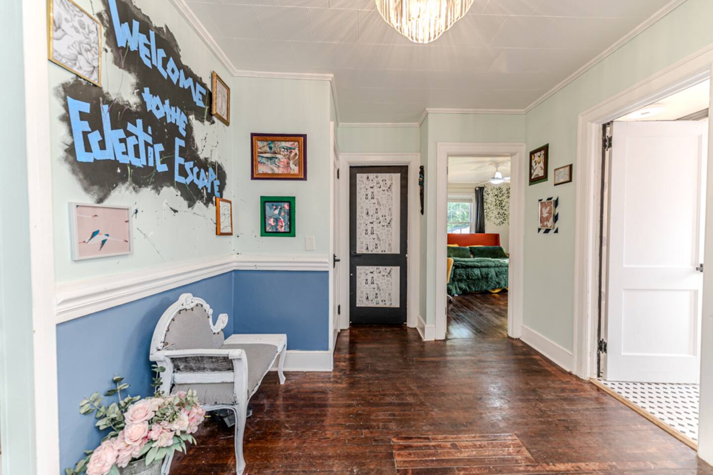 Welcome to the Eclectic Escape! The Green unit features a large king-sized bed with a private bathroom! From the movie room, to the living room, & bright sunroom, there are an abundance of places to relax & enjoy yourself. With only one other rented room, there is a ton of private space! This beautiful home is in the historic district. 2-minute drive to US 1- it's easy to get everywhere, only 30 mins to Raleigh & Southern Pines! This home is walking distance to downtown Sanford's favorite spots!