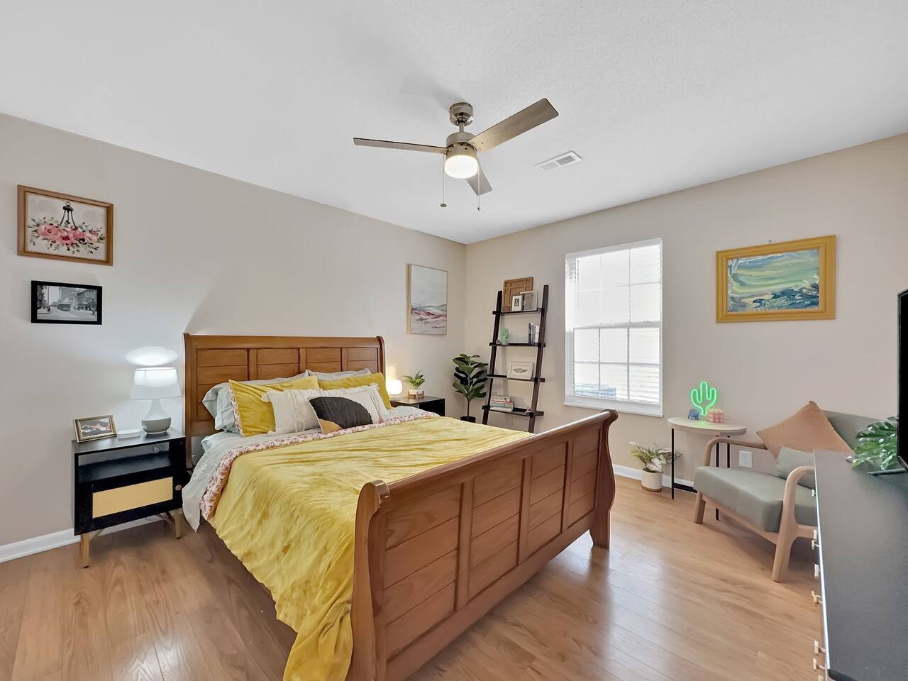 This cozy, pet friendly condo is located in a mature neighborhood at the end of a cul-de-sac. Ideal for students, traveling pros, or WFH professionals. Both bedrooms have a private bathrooms. The large open field next door is perfect for your furry companions! Need to work while here? Look no further than the electronic standing desk! A short drive to downtown or UT! The custom touches make this a perfect home away from home. Easy day trips to Tennessee’s top spots, including the Smokies!